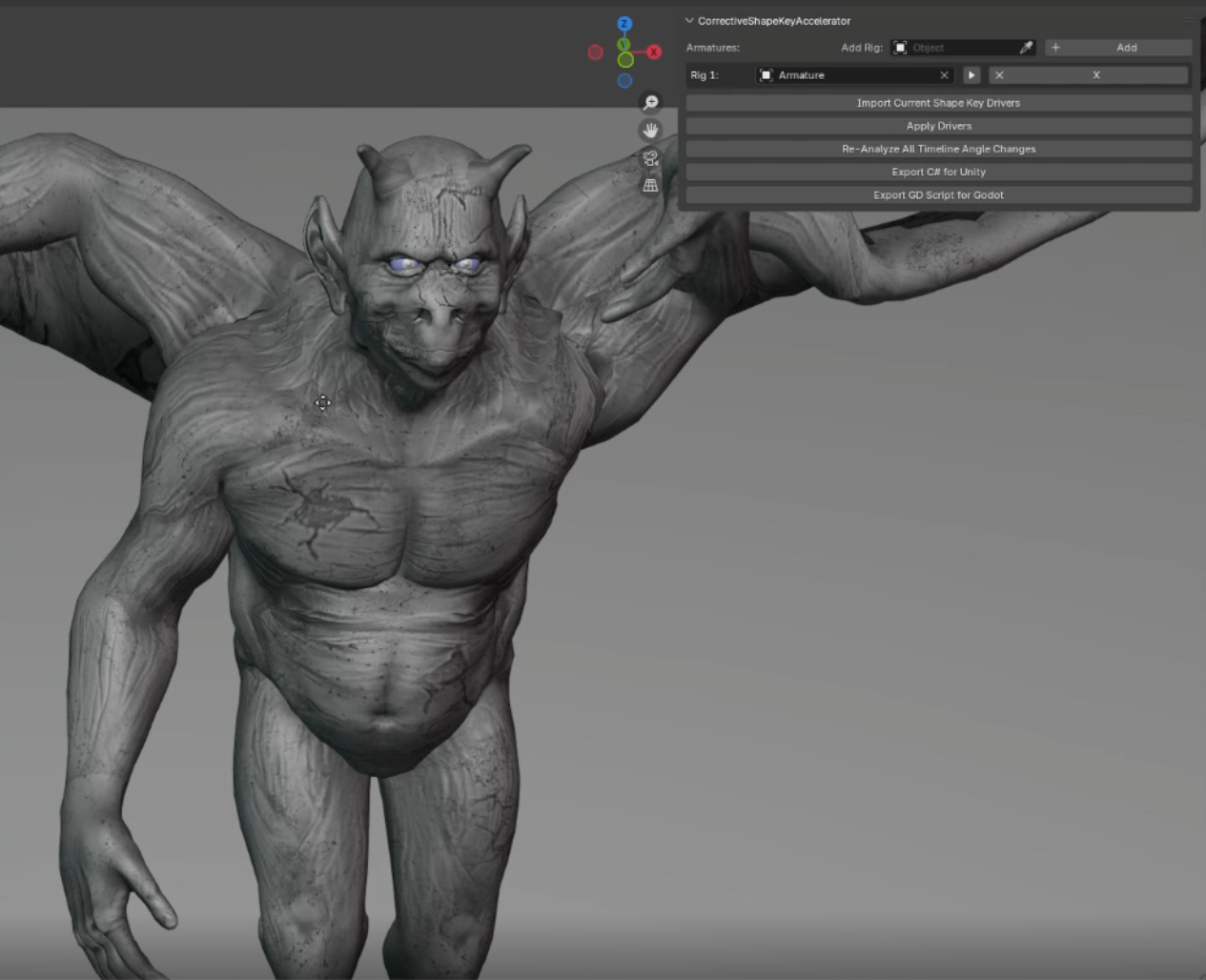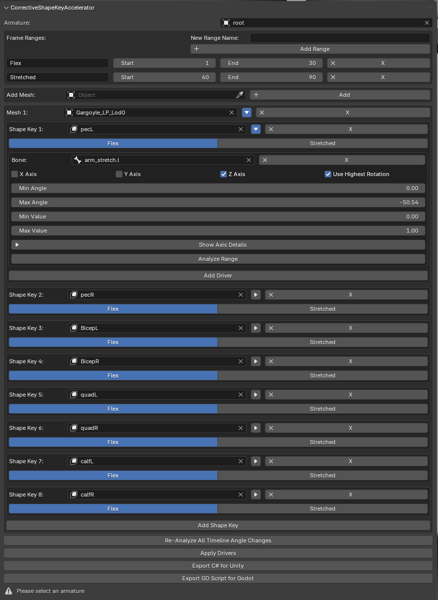 This product aims to streamline the corrective shape key rigging workflow by using and animation and expected angle change analysis to automatically generate shape key drivers!
